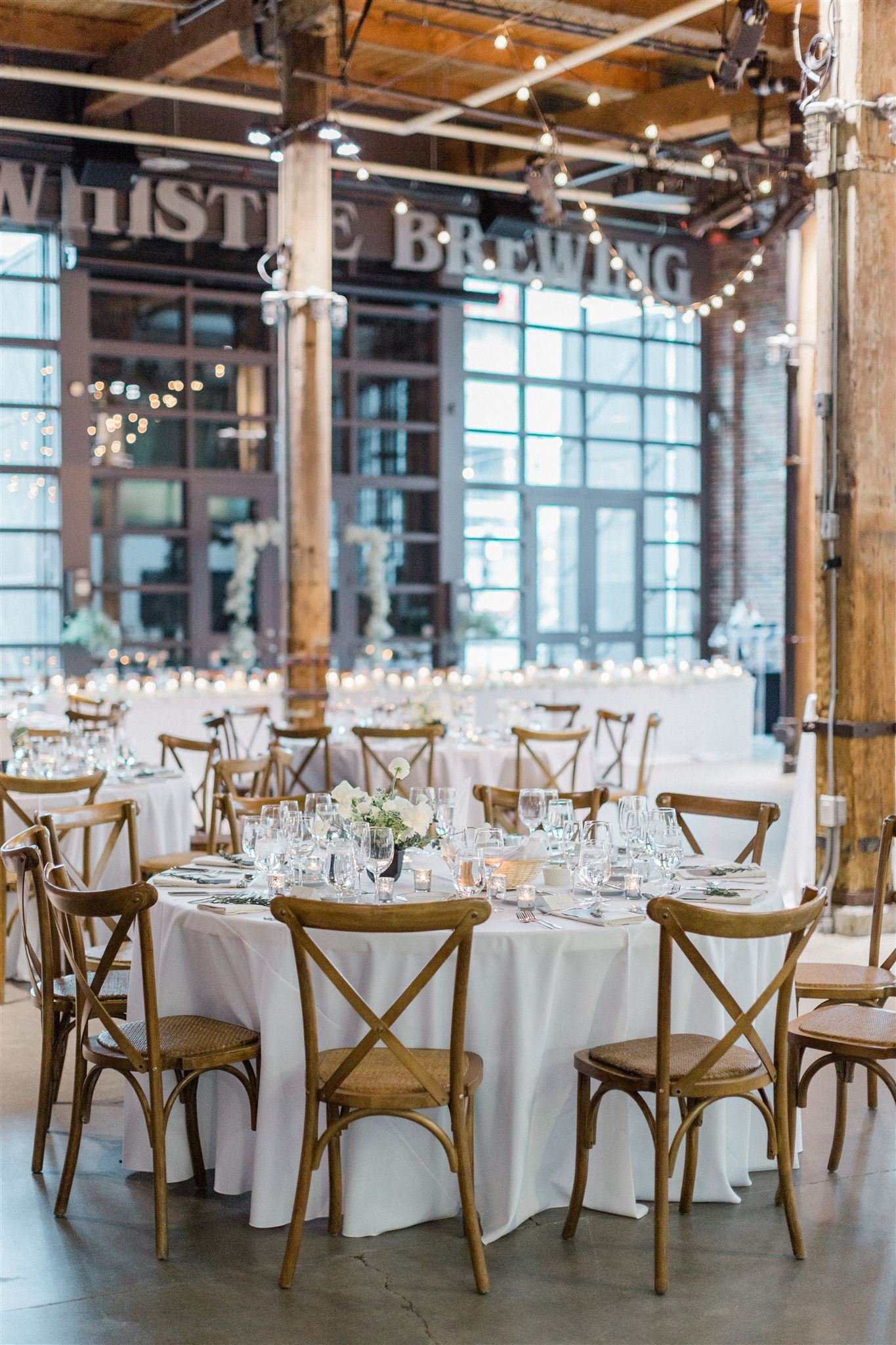 Steam Whistle Brewing downtown wedding. Bud vases and candles for a modern and elegant wedding installation at one of Toronto’s favourite downtown venues.